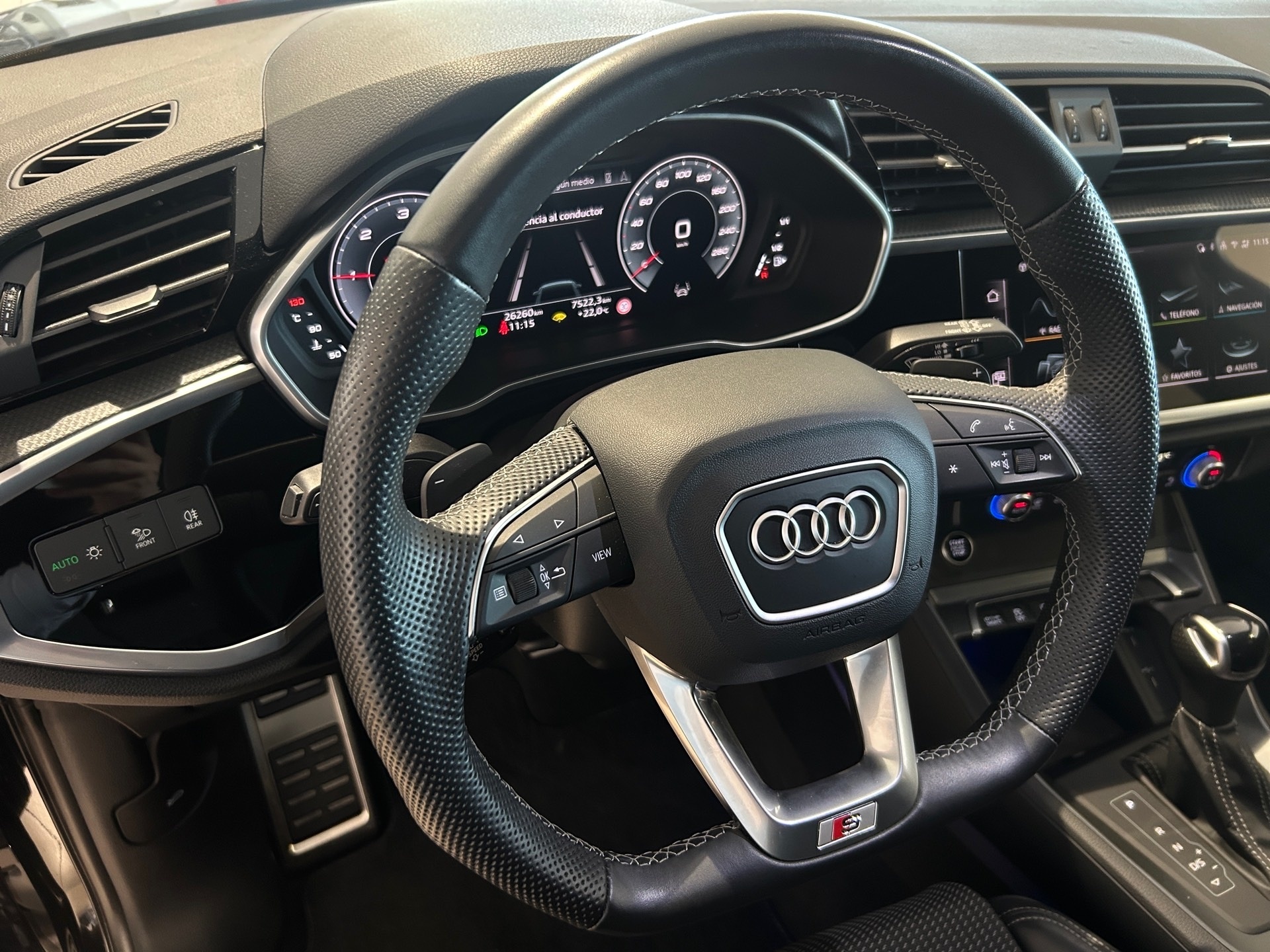 - * Volante multi-función de aluminio y cuero ajustable en altura y en profundidad
